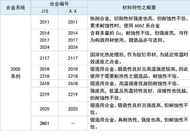 2xxx 系列: 鋁銅合金,如 2024、2014 等。具有高強度,但耐腐蝕性較差。