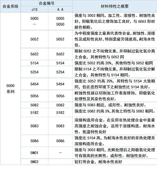 5xxx 系列: 鋁鎂合金,如 5052、5083 等。具有較高的強度和良好的抗腐蝕性。